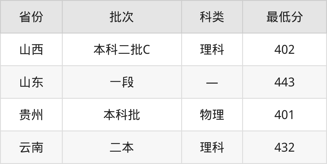 汉口学院计算机科学与技术专业在全国各省最低录取分数线为401分(贵州物理类),除此之外,在其余地区的最低分为山西理科402分、山东443分、云南理科432分,以上数据均为2024年数据,供2025年高考生参考。