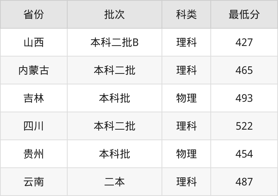 闽江学院服装设计与工程专业录取分数线从427分到522分不等,最低分数线如下: