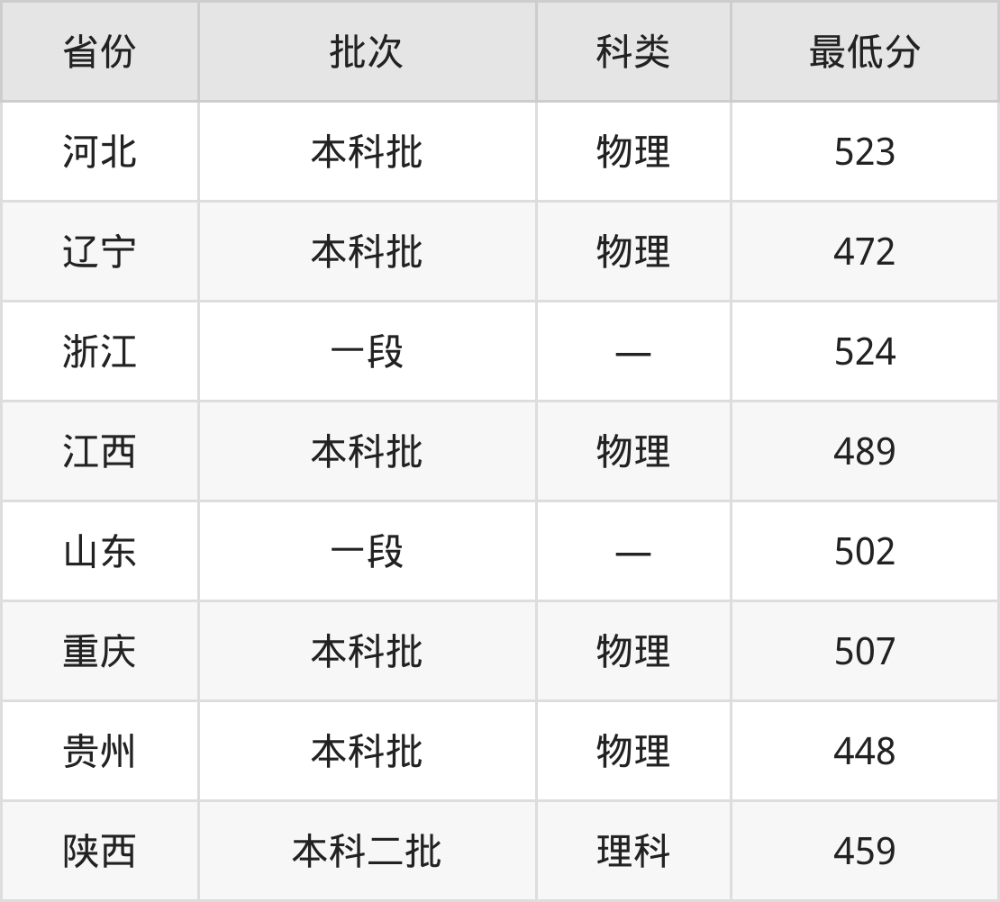 新疆农业大学计算机科学与技术专业在全国各省最低录取分数线为448分(贵州物理类),除此之外,在其余地区的最低分为陕西理科459分、河北物理类523分、辽宁物理类472分、浙江524分等,以上数据均为2024年数据,供2025年高考生参考。