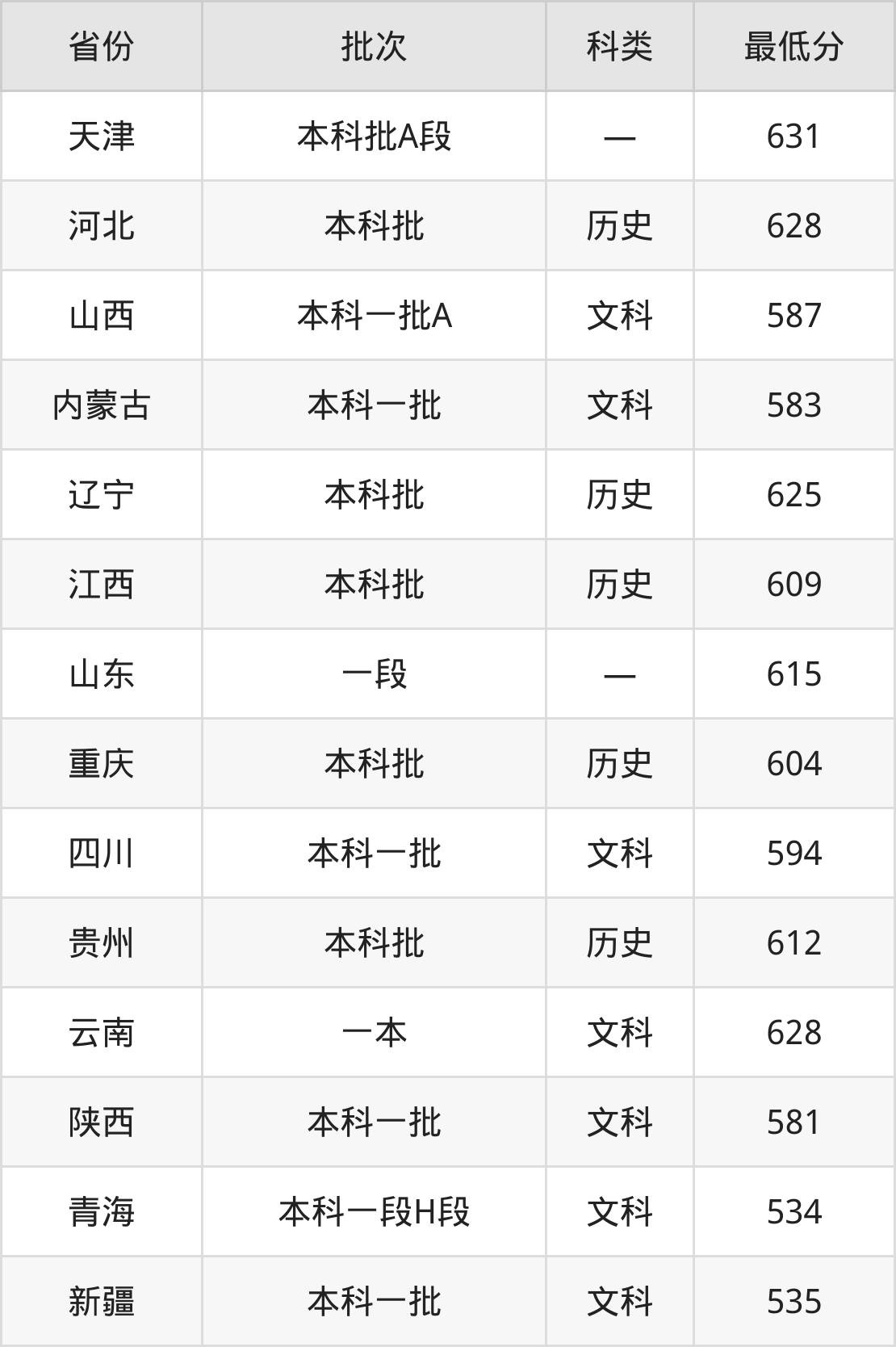 中国海洋大学汉语言文学专业录取分数线从534分到631分不等,在部分地区的最低分数线如下: