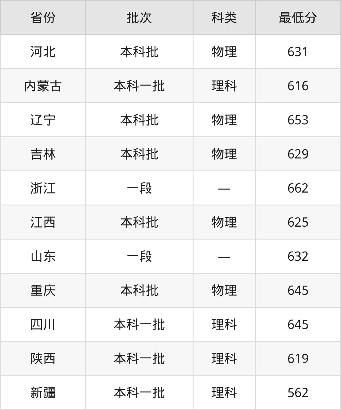 南京航空航天大学计算机科学与技术专业录取分数线从562分到662分不等,在部分地区的最低分数线如下: