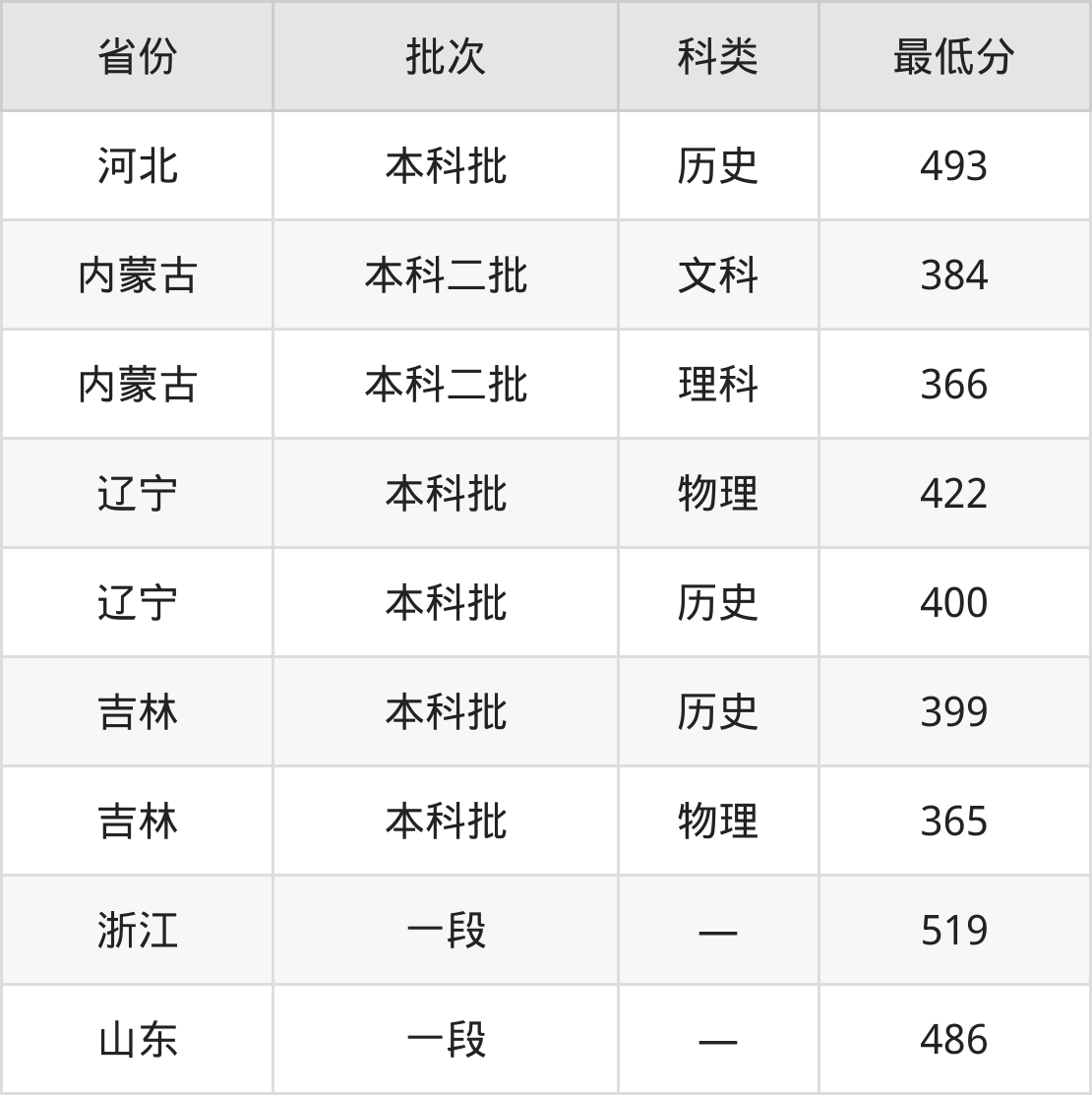 长春人文学院俄语专业在全国各省最低录取分数线为365分(吉林物理类),除此之外,在其余地区的最低分为辽宁历史类400分、浙江519分、山东486分、河北历史类493分等,以上数据均为2024年数据,供2025年高考生参考。