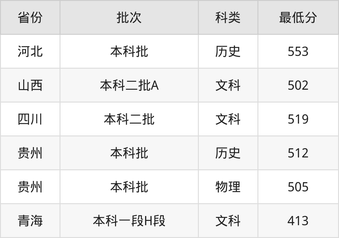 江苏理工学院财务管理专业在全国各省最低录取分数线为413分(青海文科),除此之外,在其余地区的最低分为山西文科502分、四川文科519分、贵州物理类505分、河北历史类553分,以上数据均为2024年数据,供2025年高考生参考。