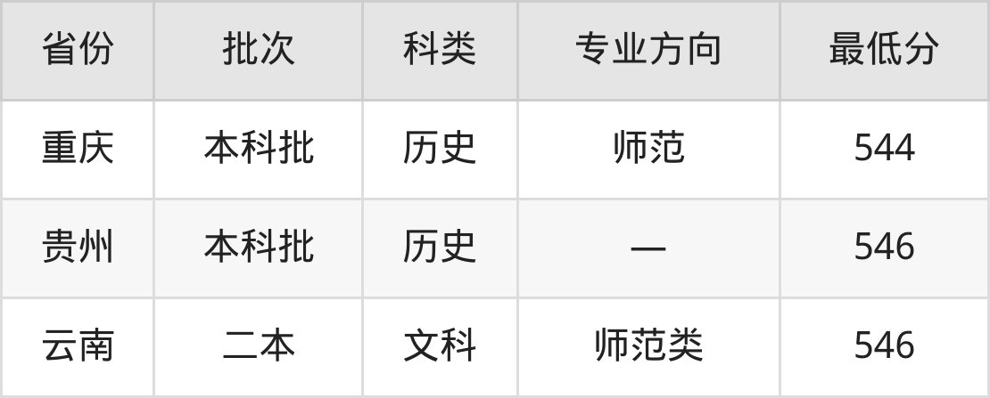 赣南师范大学历史学专业录取分数线从495分到612分不等,在部分地区的最低分数线如下: