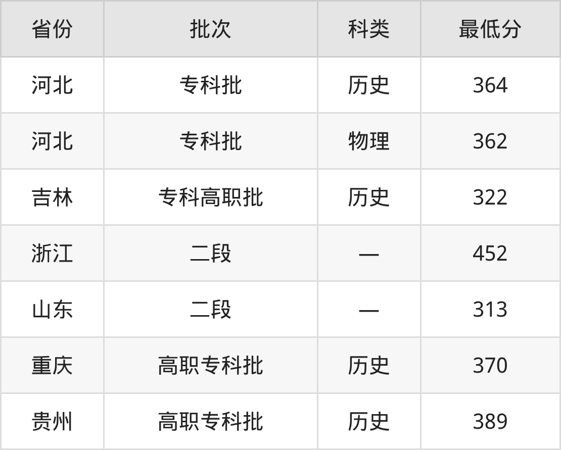 榆林能源科技职业学院口腔医学技术专业在全国各省最低录取分数线为313分(山东),除此之外,在其余地区的最低分为吉林历史类322分、浙江452分、重庆历史类370分、贵州历史类389分等,以上数据均为2025年数据,供2026年高考生参考。