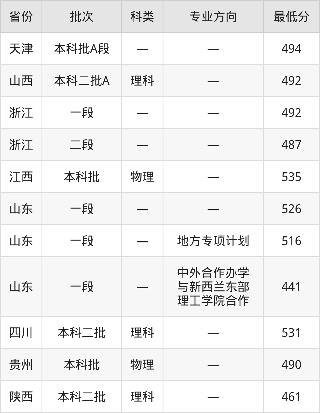齐鲁工业大学酿酒工程专业录取分数线从441分到535分不等,最低分数线如下: