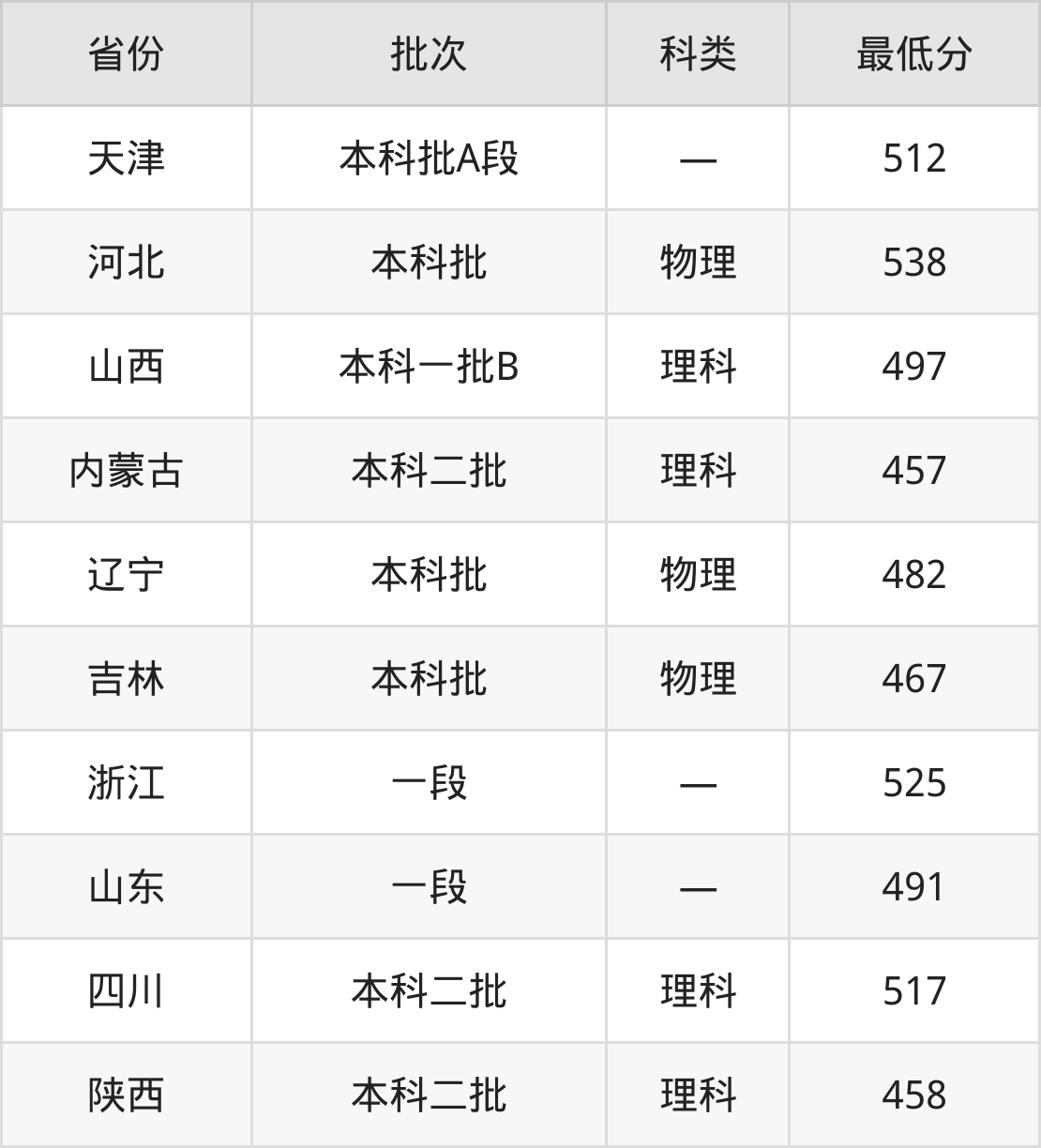 太原工业学院电子信息工程专业在全国各省最低录取分数线为457分(内蒙古理科),除此之外,在其余地区的最低分为吉林物理类467分、四川理科517分、陕西理科458分、天津512分等,以上数据均为2024年数据,供2025年高考生参考。