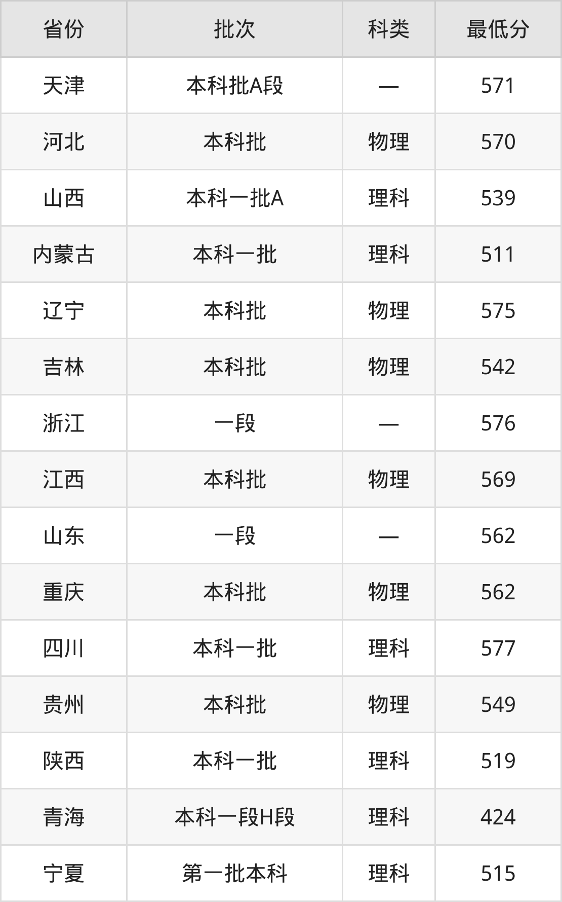 山西:理科最低539分