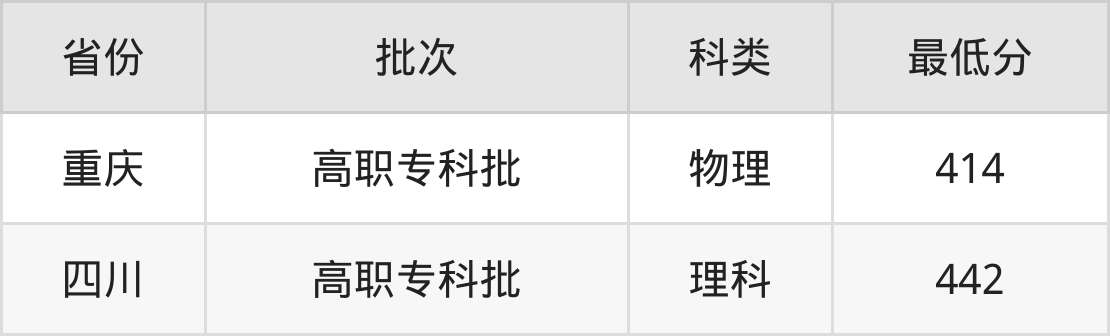 四川机电职业技术学院电气自动化技术专业录取分数线从414分到442分不等,最低分数线如下: