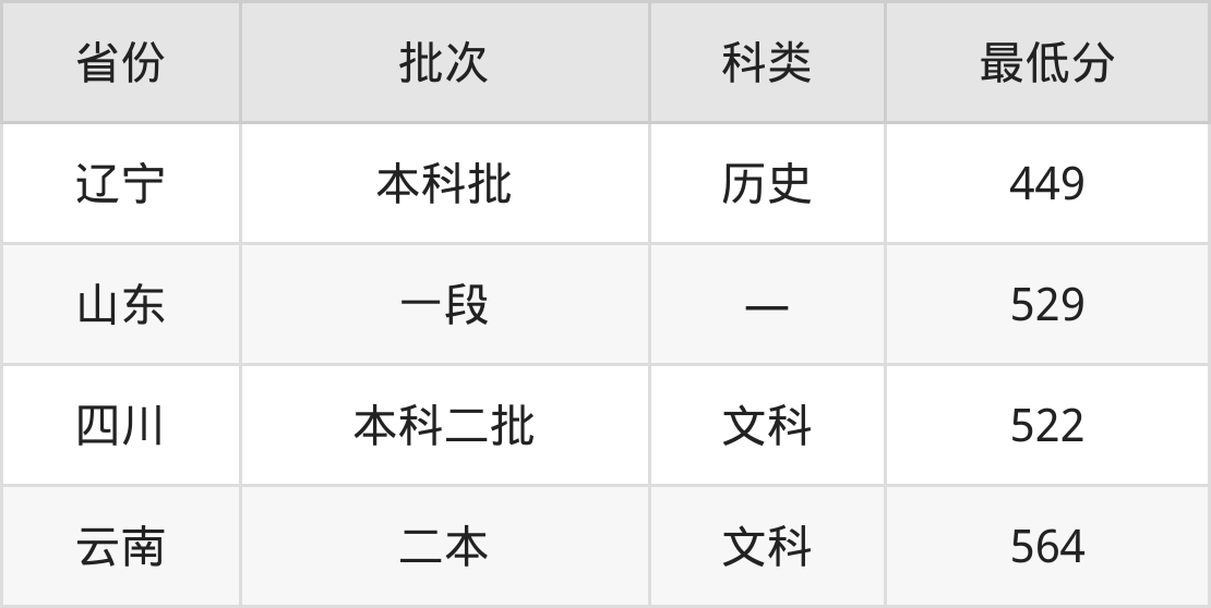 甘肃政法大学人力资源管理专业录取分数线从449分到564分不等,最低分数线如下: