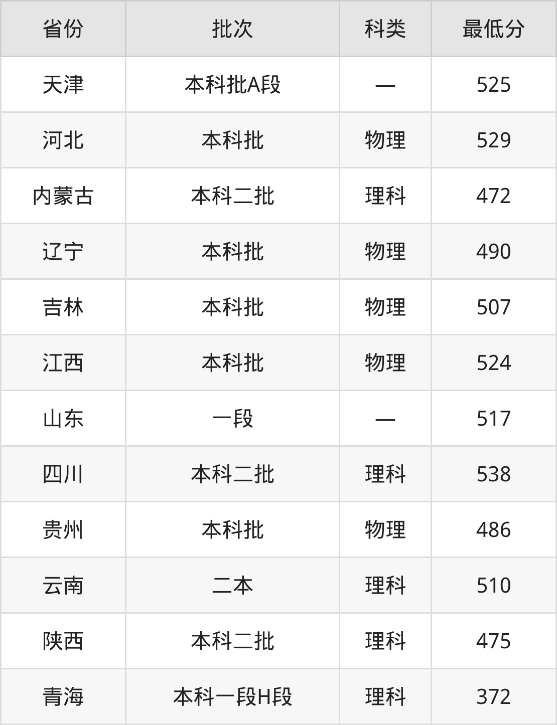 沈阳化工大学油气储运工程专业录取分数线从372分到538分不等,在部分地区的最低分数线如下: