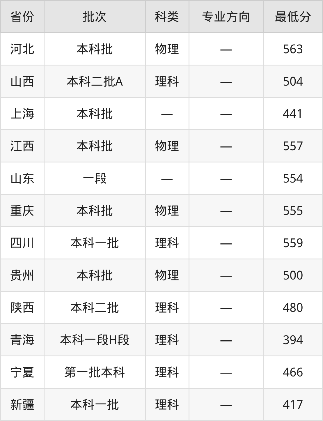 上海电机学院计算机类专业录取分数线从394分到563分不等,在部分地区的最低分数线如下: