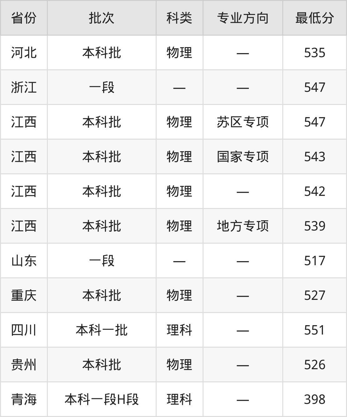 江西理工大学化学工程与工艺专业在全国各省录取分数线: