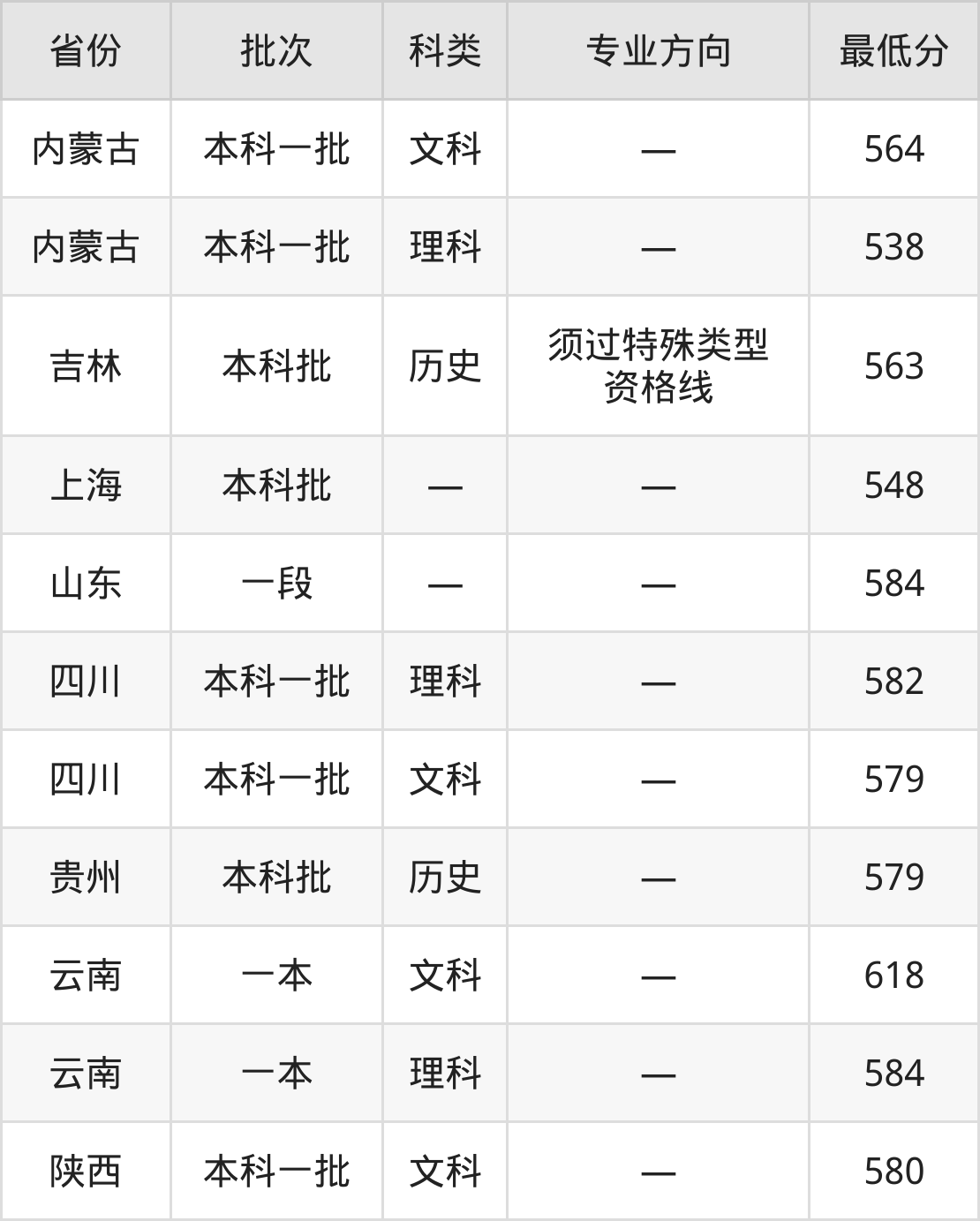 上海戏剧学院戏剧影视文学专业在全国各省最低录取分数线为538分(内蒙古理科),除此之外,在其余地区的最低分为云南理科584分、陕西文科580分、吉林历史类563分、上海548分等,以上数据均为2024年数据,供2025年高考生参考。
