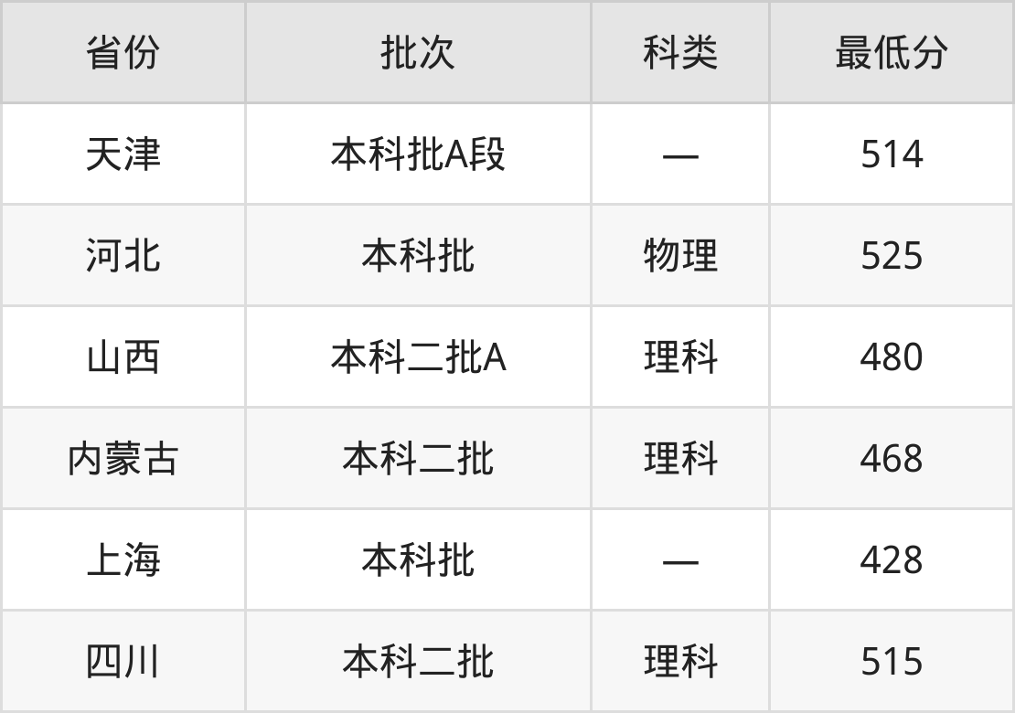 河北建筑工程学院计算机科学与技术专业录取分数线从428分到525分不等,最低分数线如下: