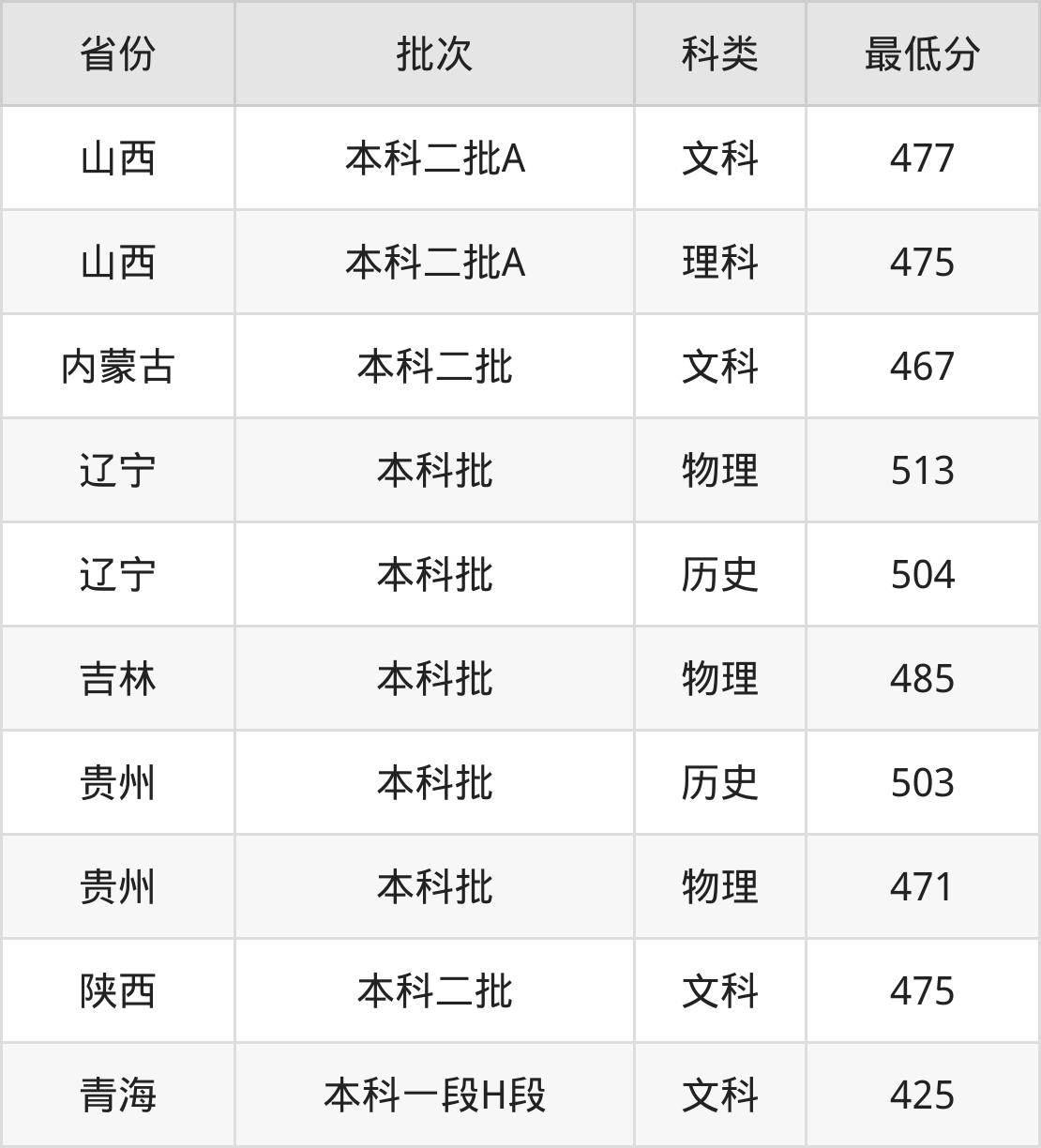 黑龙江工程学院会计学专业在全国各省最低录取分数线为425分(青海文科),除此之外,在其余地区的最低分为陕西文科475分、山西理科475分、内蒙古文科467分、辽宁历史类504分等,以上数据均为2024年数据,供2025年高考生参考。