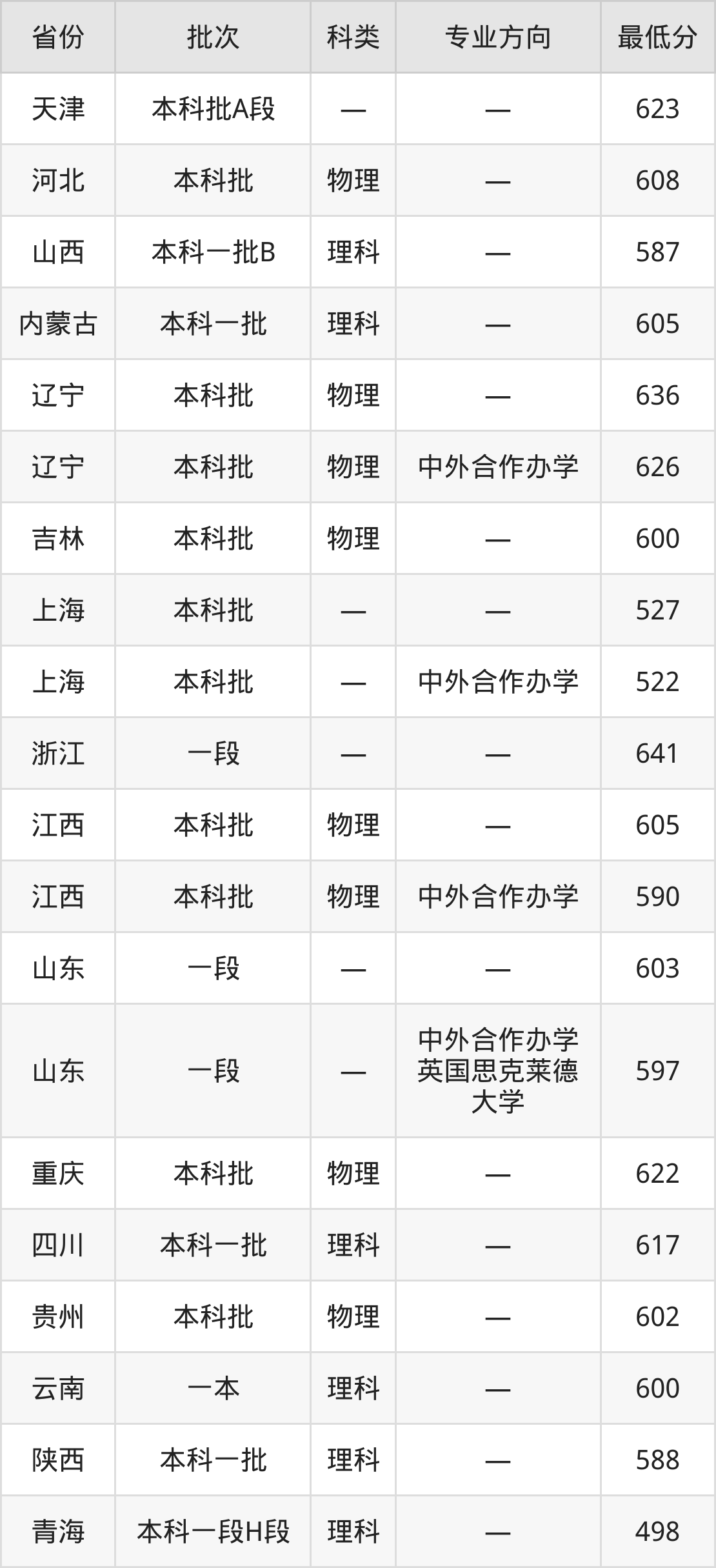 上海电力大学电气工程及其自动化专业在全国各省最低录取分数线为498分(青海理科),除此之外,在其余地区的最低分为天津623分、内蒙古理科605分、辽宁物理类626分、山东597分等,以上数据均为2024年数据,供2025年高考生参考。