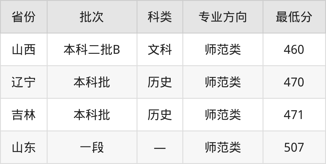 甘肃民族师范学院英语专业在全国各省最低录取分数线为460分(山西文科),除此之外,在其余地区的最低分为辽宁历史类470分、吉林历史类471分、山东507分,以上数据均为2024年数据,供2025年高考生参考。