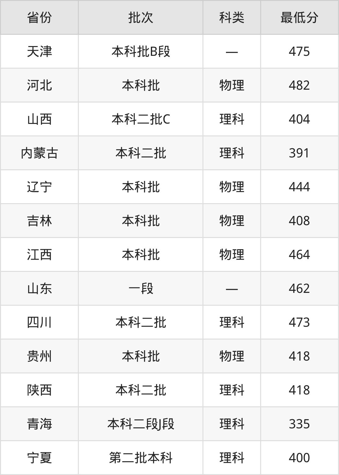 青岛工学院计算机科学与技术专业在全国各省最低录取分数线为335分(青海理科),除此之外,在其余地区的最低分为山东462分、贵州物理类418分、宁夏理科400分、天津475分等,以上数据均为2024年数据,供2025年高考生参考。