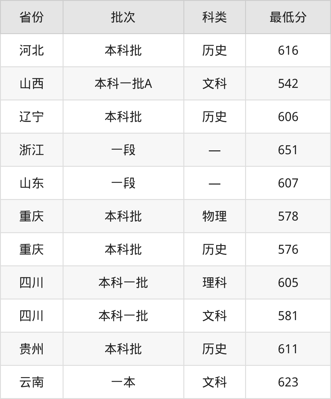 西南政法大学政治学与行政学专业在全国各省最低录取分数线为542分(山西文科),除此之外,在其余地区的最低分为辽宁历史类606分、重庆历史类576分、四川文科581分、云南文科623分等,以上数据均为2024年数据,供2025年高考生参考。