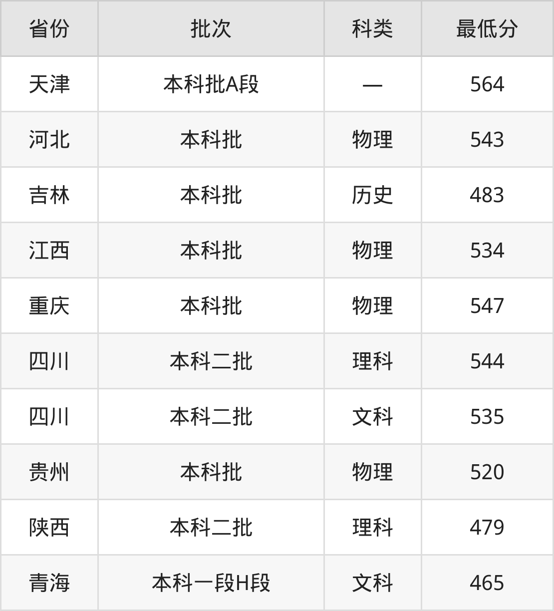 成都大学护理学专业录取分数线从465分到564分不等,最低分数线如下:
