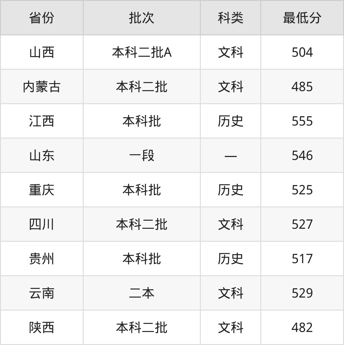山西:文科最低504分