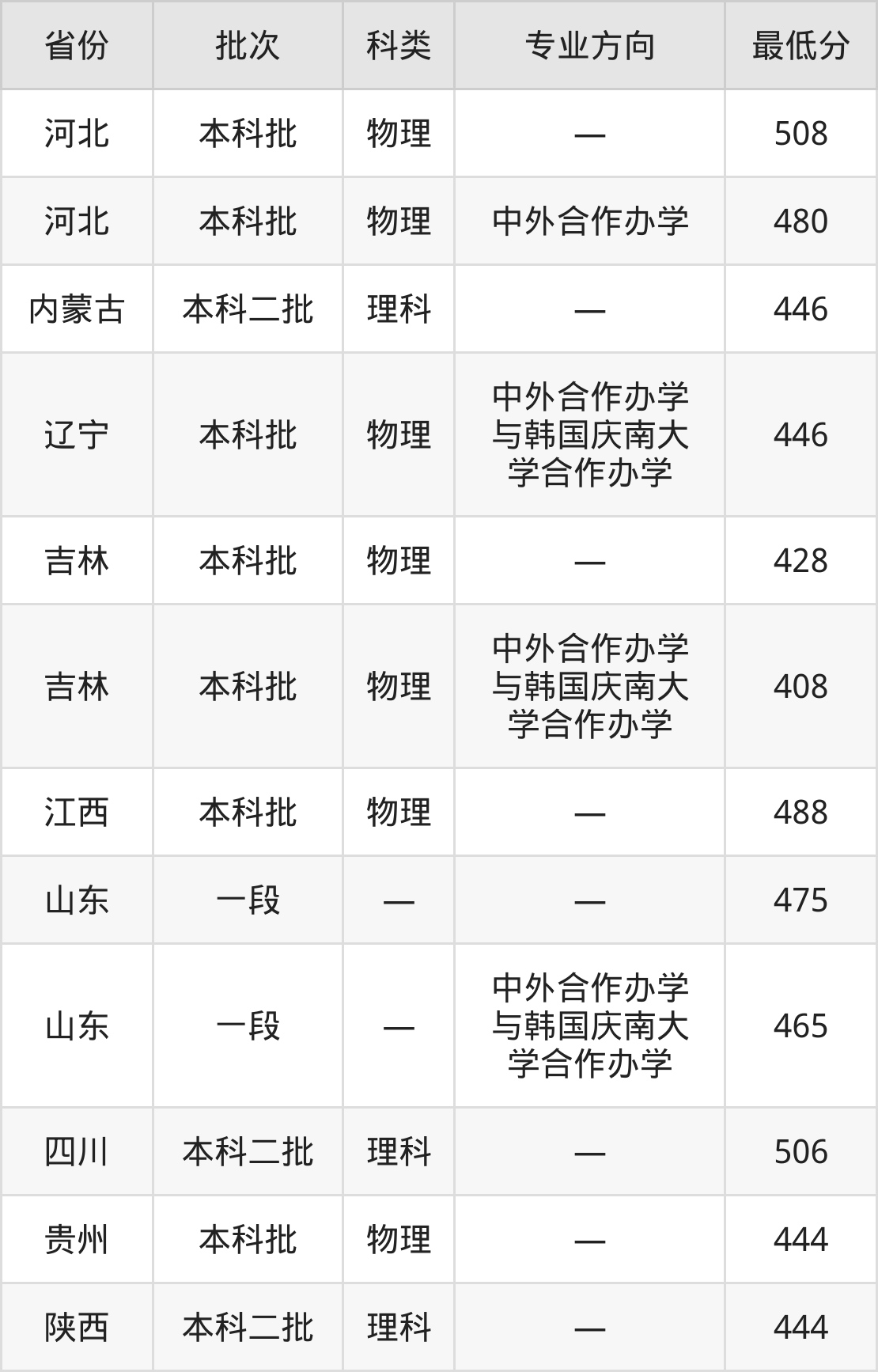 吉林农业科技学院机械设计制造及其自动化专业录取分数线从408分到508分不等,最低分数线如下: