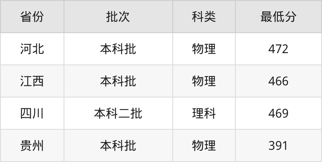 无锡太湖学院工程管理专业在全国各省最低录取分数线为391分(贵州物理类),除此之外,在其余地区的最低分为河北物理类472分、江西物理类466分、四川理科469分,以上数据均为2024年数据,供2025年高考生参考。