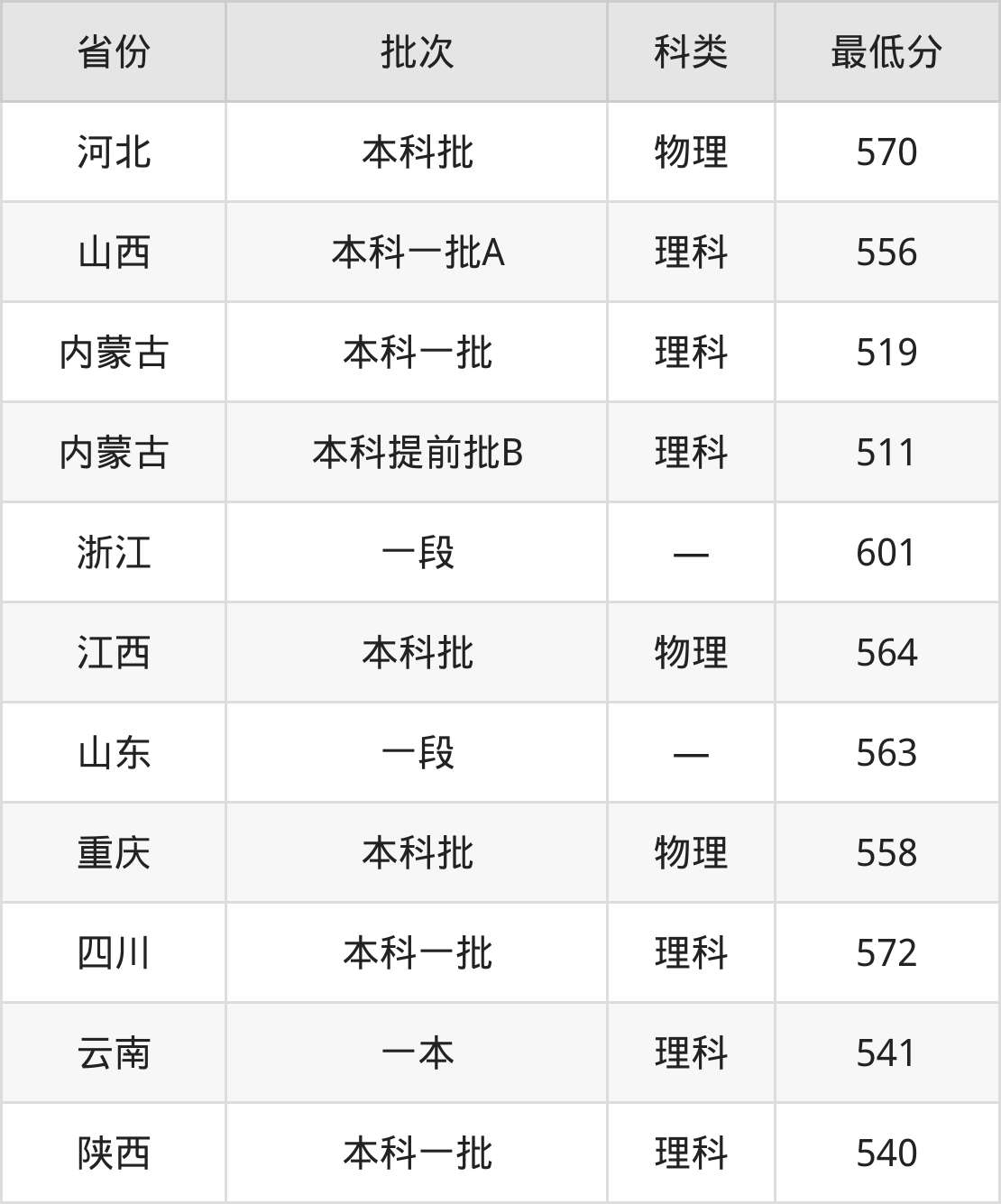 内蒙古大学环境工程专业录取分数线从511分到601分不等,最低分数线如下: