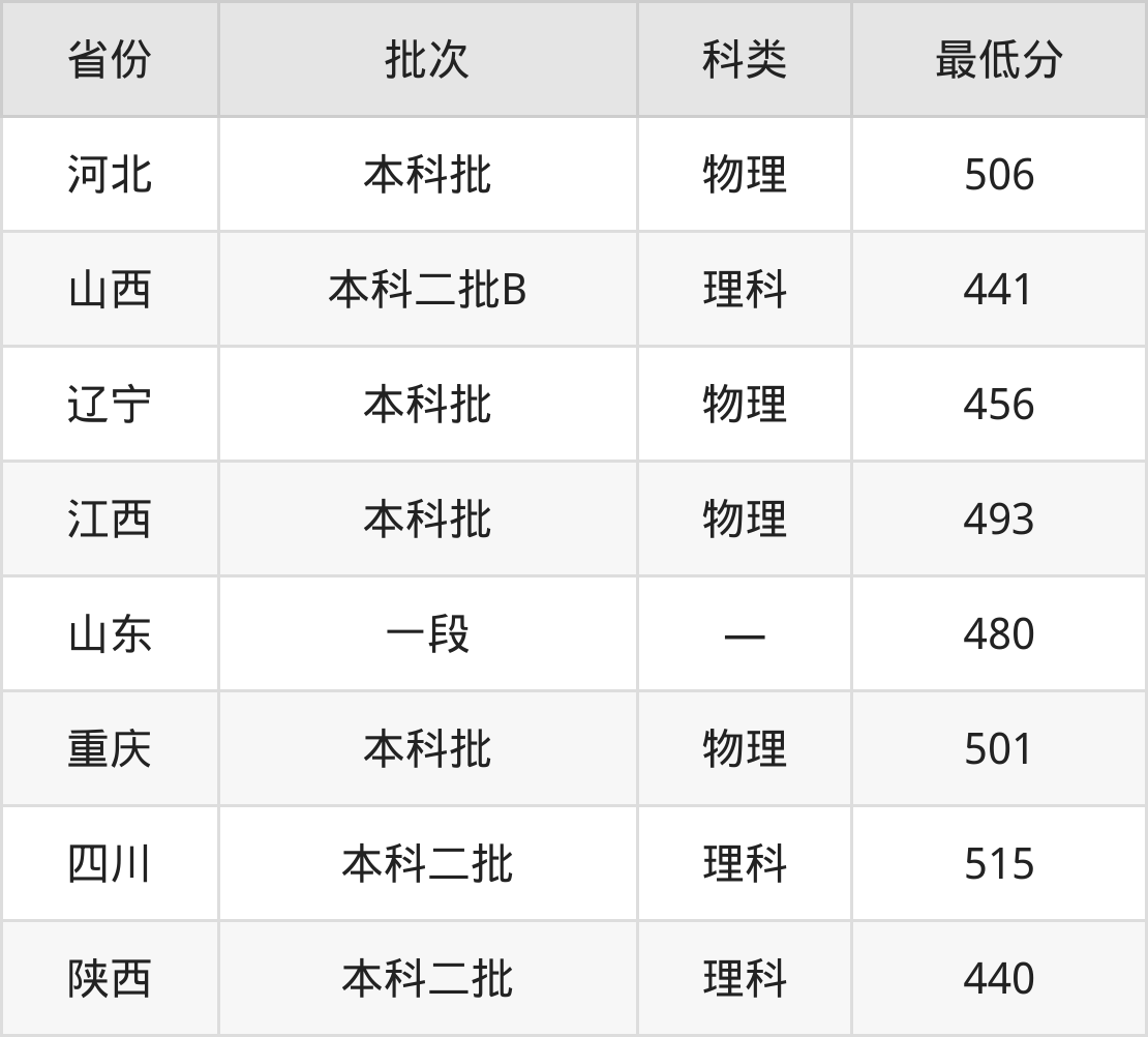 安徽科技学院农学专业在全国各省最低录取分数线为440分(陕西理科),除此之外,在其余地区的最低分为河北物理类506分、山西理科441分、辽宁物理类456分、江西物理类493分等,以上数据均为2024年数据,供2025年高考生参考。