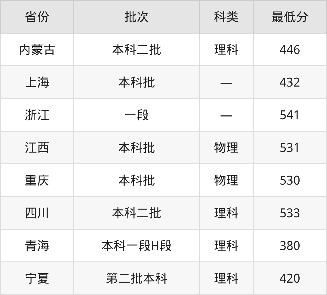 湖南工学院软件工程专业在全国各省最低录取分数线为380分(青海理科),除此之外,在其余地区的最低分为四川理科533分、宁夏理科420分、内蒙古理科446分、上海432分等,以上数据均为2024年数据,供2025年高考生参考。