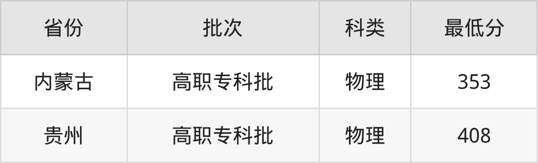 四川工程职业技术大学智能制造装备技术专业录取分数线从353分到408分不等,最低分数线如下: