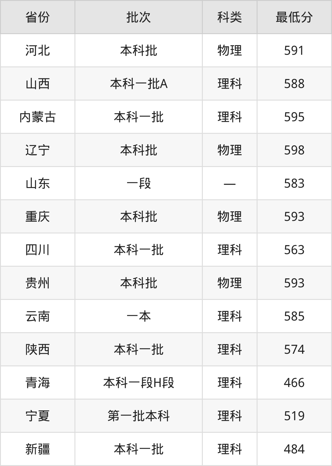 中国矿业大学(北京)智能采矿工程专业录取分数线从466分到598分不等,在部分地区的最低分数线如下: