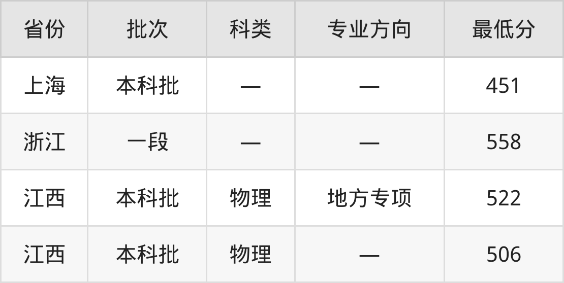 赣南医科大学医学影像技术专业在全国各省最低录取分数线为451分(上海),除此之外,在其余地区的最低分为浙江558分、江西物理类506分,以上数据均为2024年数据,供2025年高考生参考。