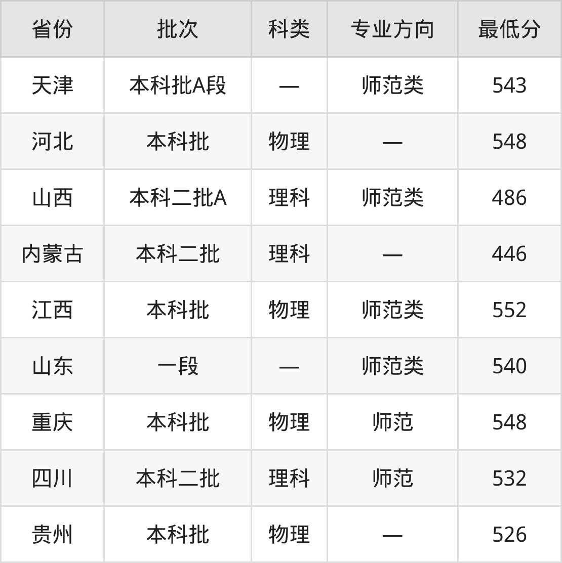 广西师范大学地理科学专业在全国各省最低录取分数线为446分(内蒙古理科),除此之外,在其余地区的最低分为山西理科486分、山东540分、天津543分、河北物理类548分等,以上数据均为2024年数据,供2025年高考生参考。