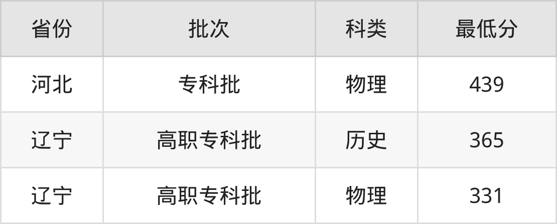 鞍山职业技术学院移动应用开发专业录取分数线从331分到439分不等,最低分数线如下:
