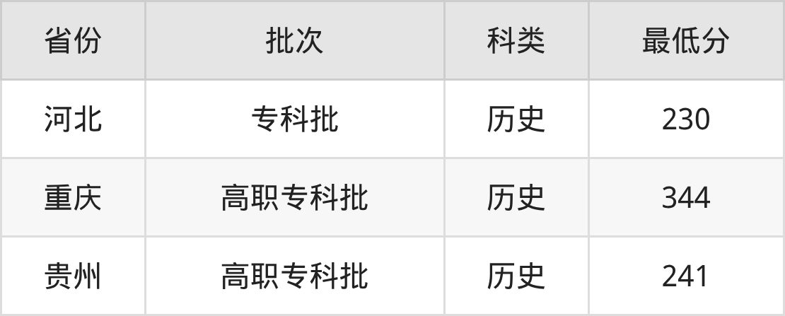 重庆智能工程职业学院城市轨道交通运营管理专业在全国各省录取分数线: