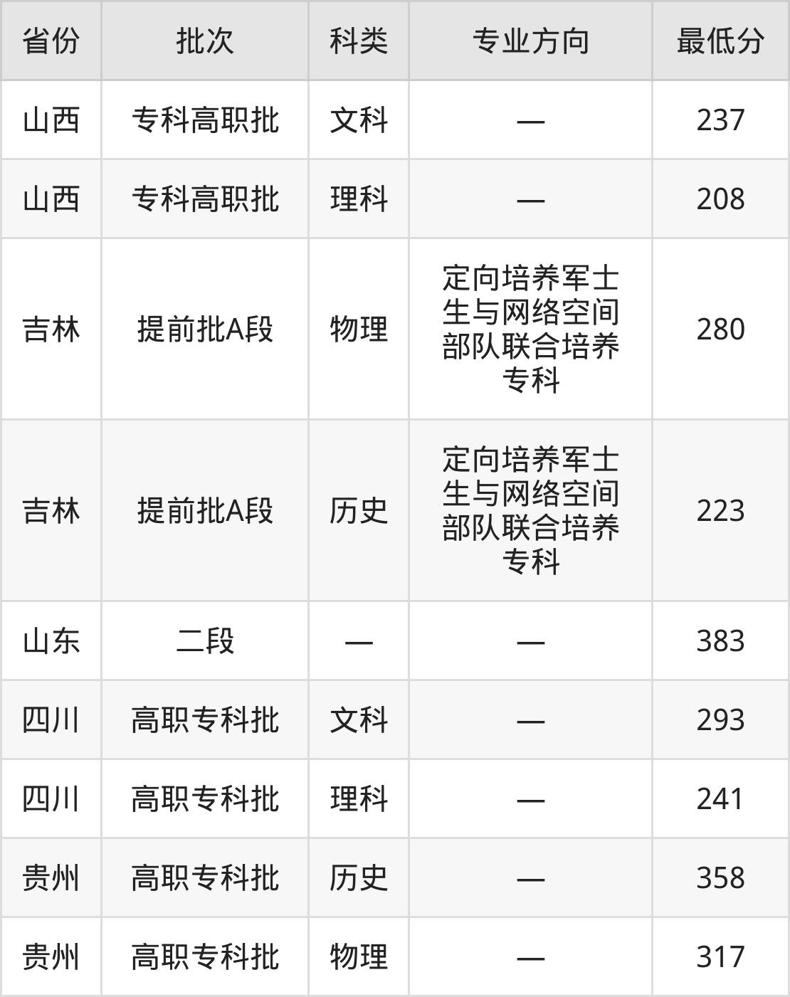 潍坊科技学院数字媒体技术专业在全国各省最低录取分数线为208分(山西理科),除此之外,在其余地区的最低分为吉林历史类223分、山东383分、四川理科241分、贵州物理类317分,以上数据均为2024年数据,供2025年高考生参考。