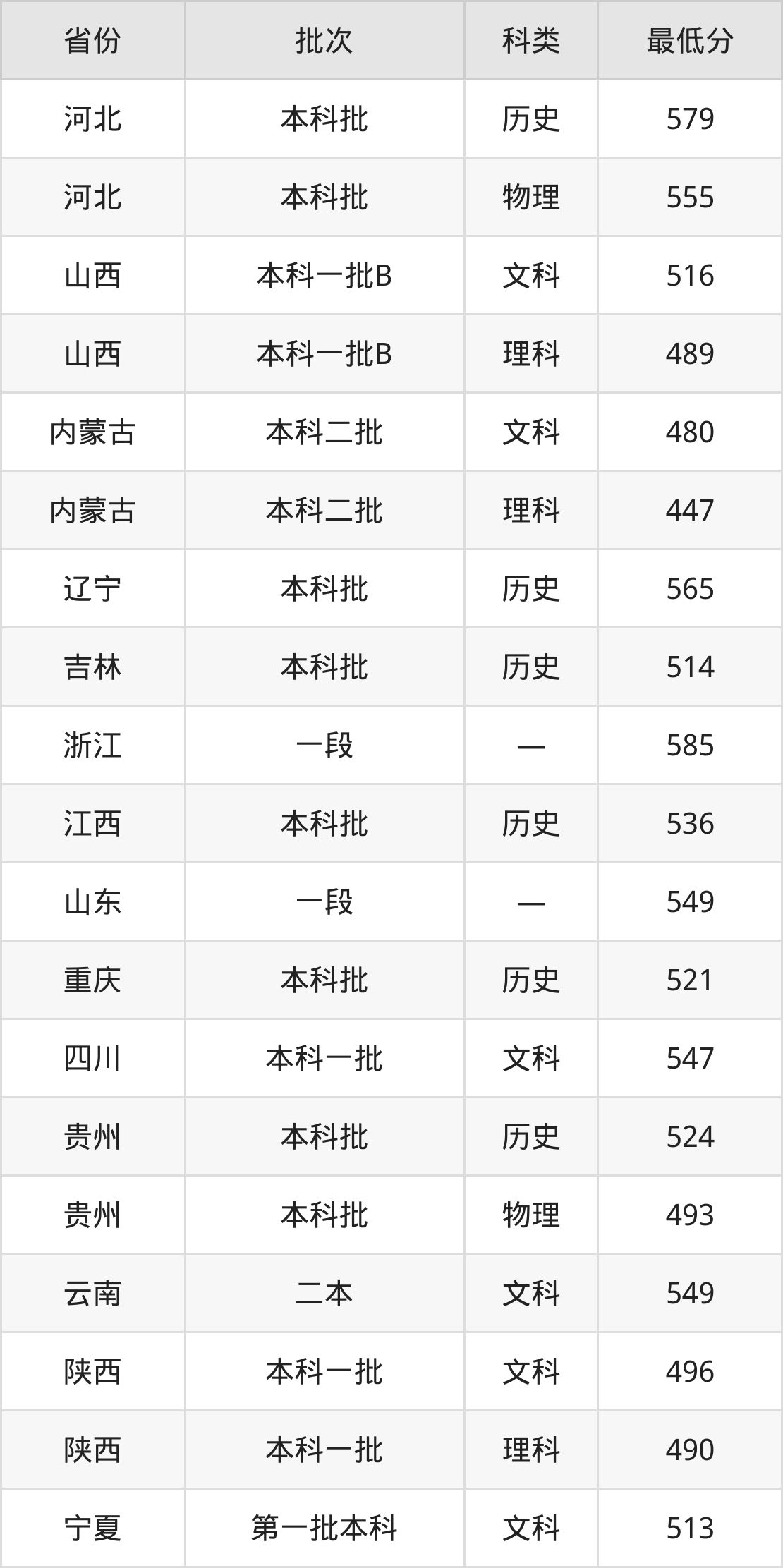 山西财经大学人力资源管理专业录取分数线从447分到585分不等,在部分地区的最低分数线如下: