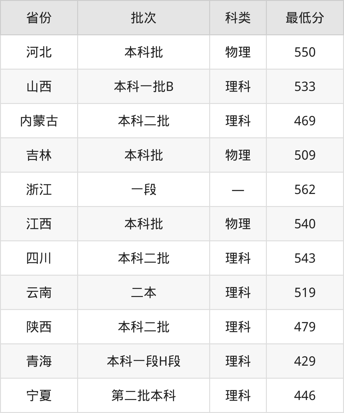 河北工程大学机械设计制造及其自动化专业录取分数线从429分到562分不等,在部分地区的最低分数线如下: