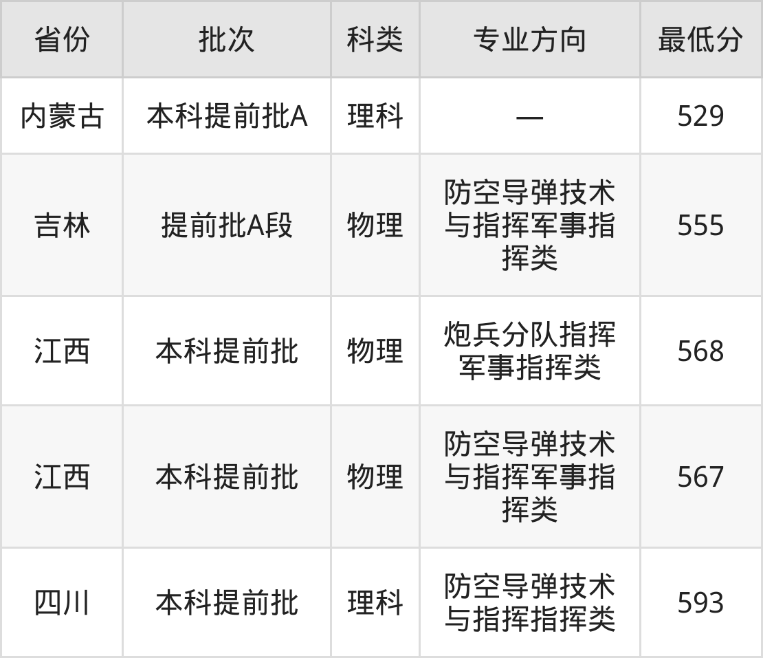 陆军炮兵防空兵学院弹药工程与爆炸技术专业在全国各省录取分数线: