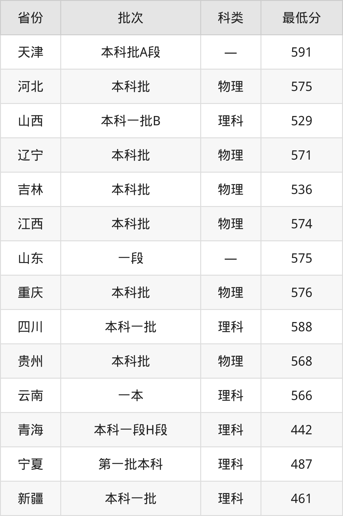 成都理工大学石油工程专业录取分数线从442分到591分不等,在部分地区的最低分数线如下: