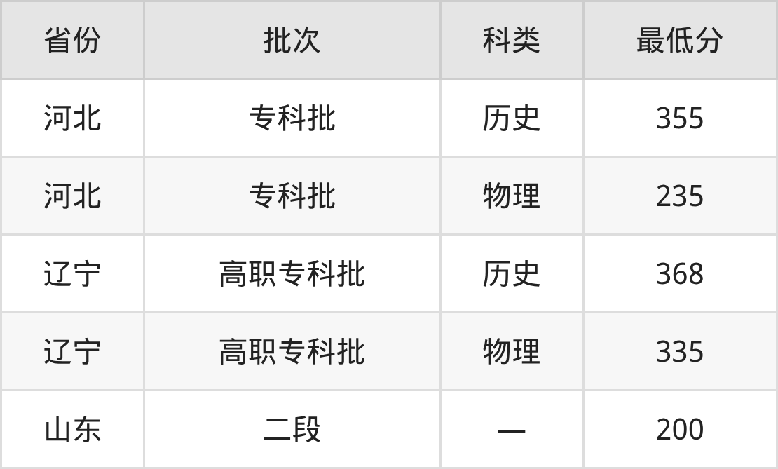 山东外事职业大学商务日语专业录取分数线从200分到368分不等,最低分数线如下: