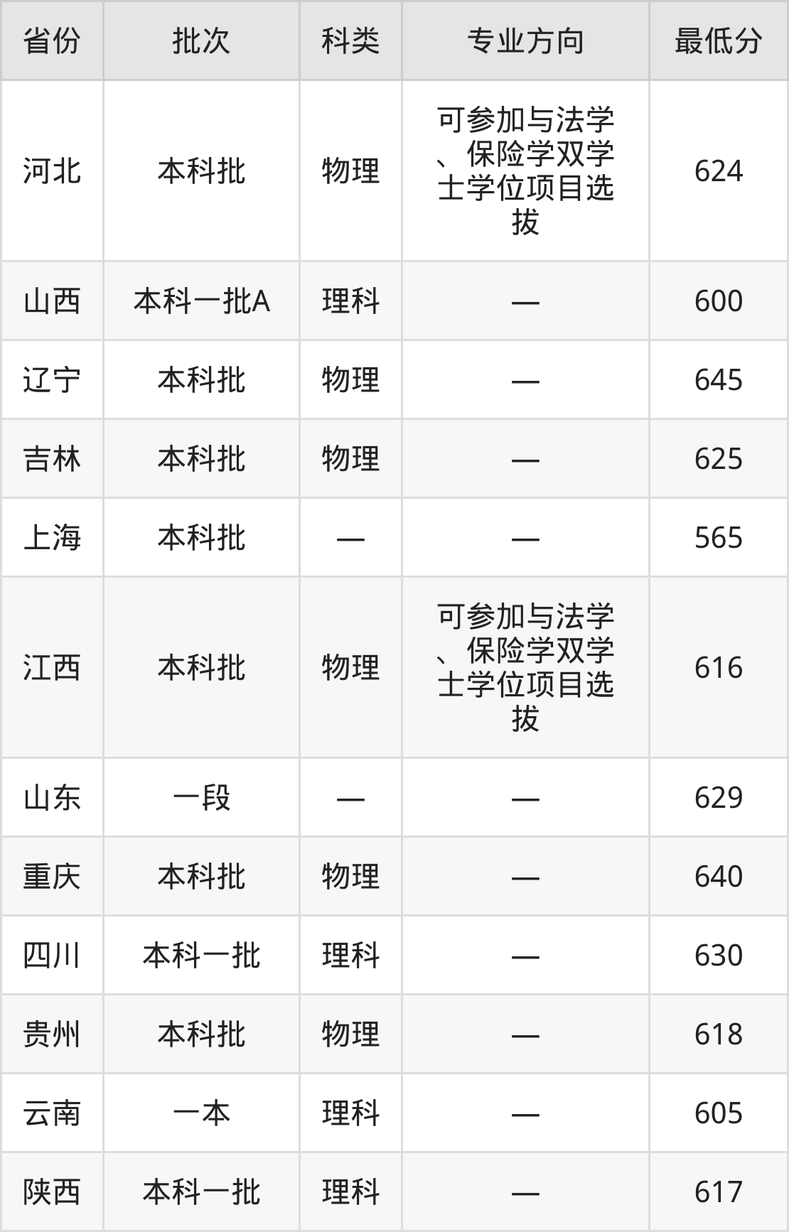 山西:理科最低600分
