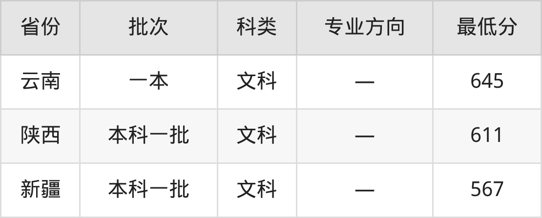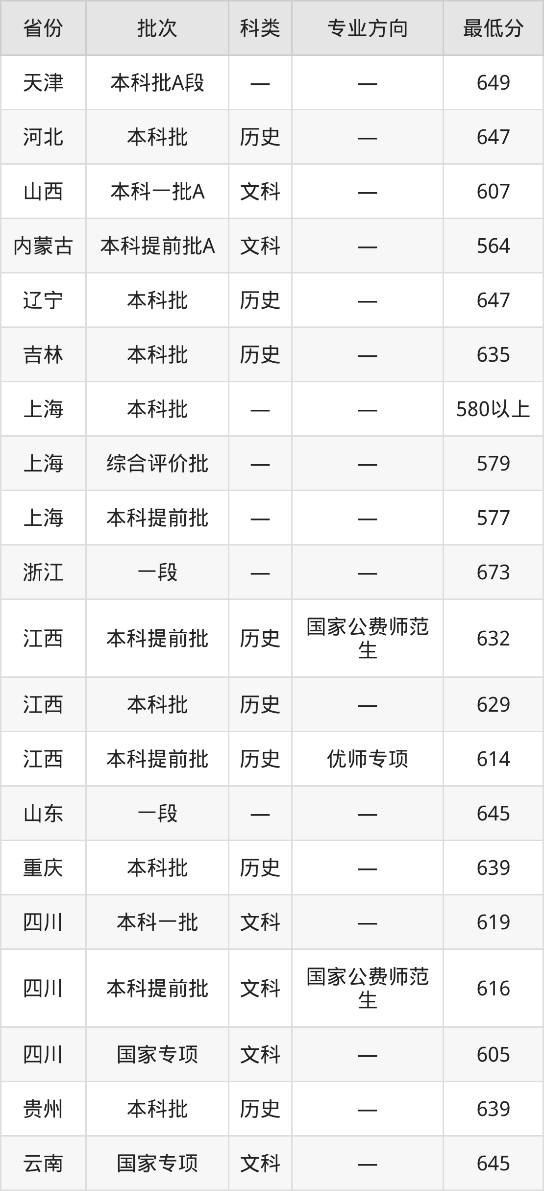 华东师范大学汉语言文学专业录取分数线从564分到673分不等,在部分地区的最低分数线如下: