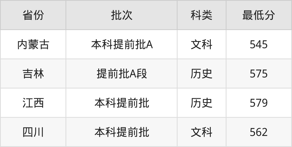 江西师范大学马克思主义理论专业在全国各省最低录取分数线为545分(内蒙古文科),除此之外,在其余地区的最低分为吉林历史类575分、江西历史类579分、四川文科562分,以上数据均为2024年数据,供2025年高考生参考。