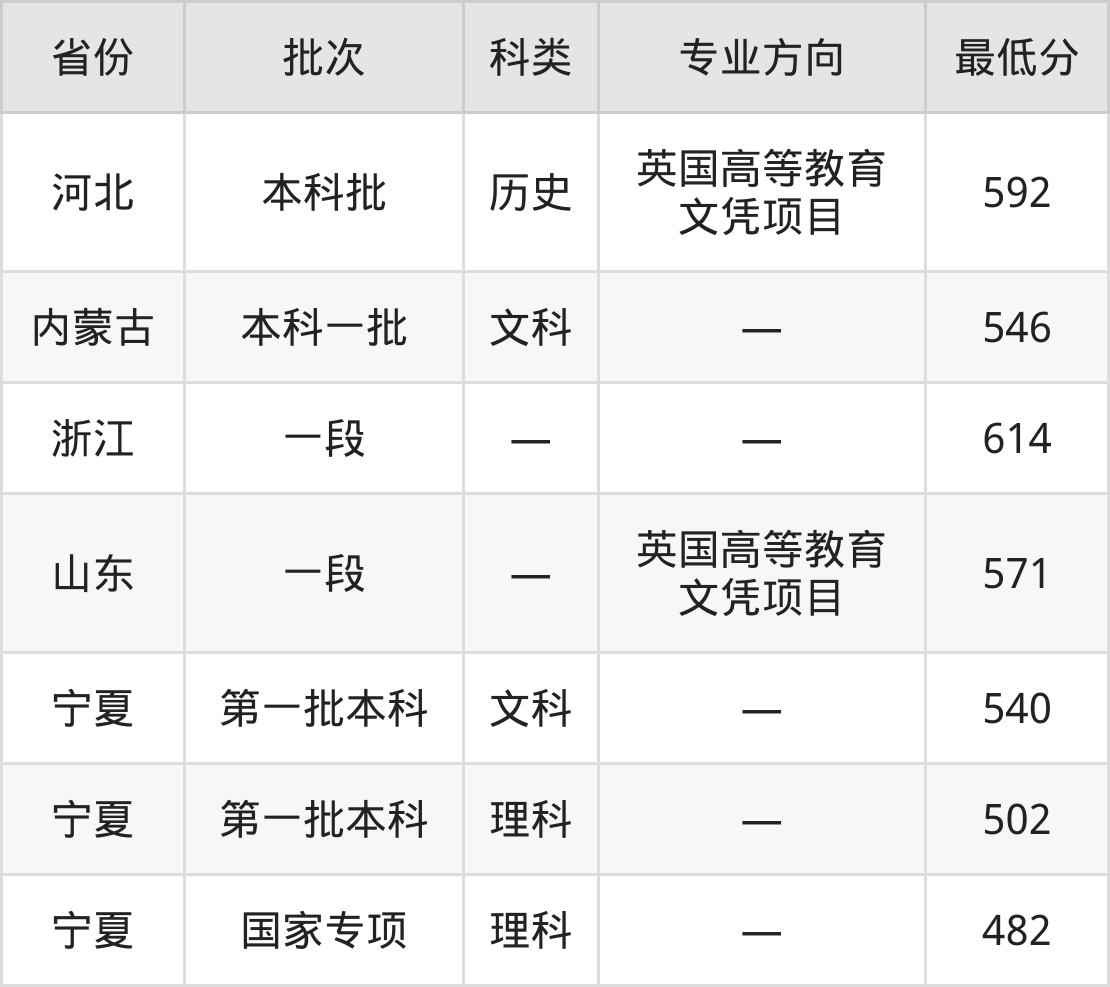 宁夏大学会计学专业在全国各省最低录取分数线为482分(宁夏理科),除此之外,在其余地区的最低分为河北历史类592分、内蒙古文科546分、浙江614分、山东571分等,以上数据均为2024年数据,供2025年高考生参考。