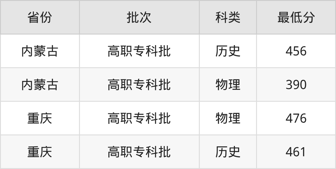成都农业科技职业学院动物医学专业在全国各省最低录取分数线为390分(内蒙古物理类),除此之外,在其余地区的最低分为重庆历史类461分,以上数据均为2025年数据,供2026年高考生参考。