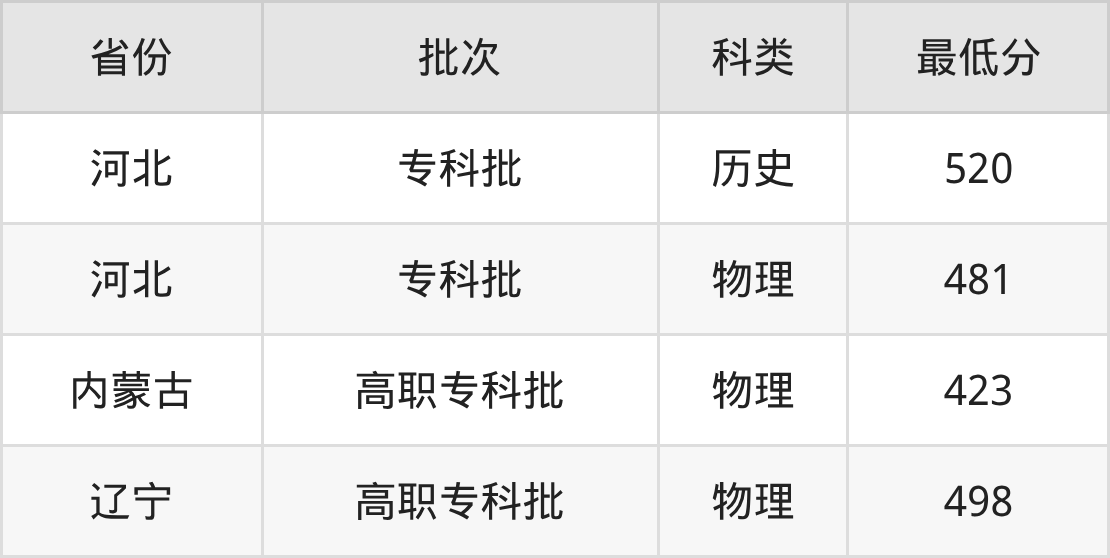 武汉电力职业技术学院发电厂及电力系统专业在全国各省最低录取分数线为423分(内蒙古物理类),除此之外,在其余地区的最低分为辽宁物理类498分、河北物理类481分,以上数据均为2025年数据,供2026年高考生参考。