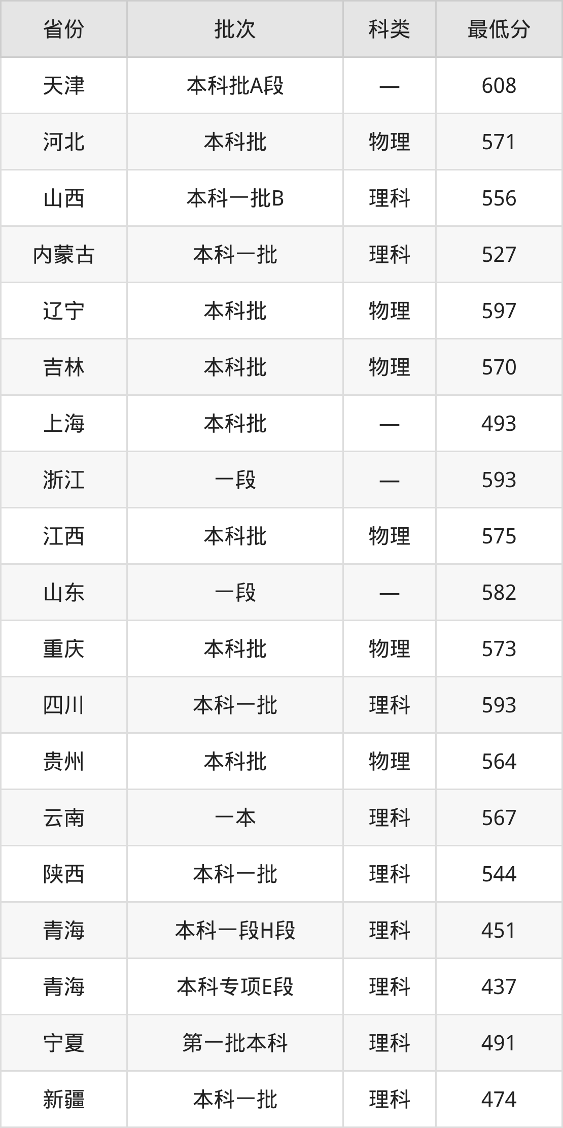 中国计量大学质量管理工程专业录取分数线从437分到608分不等,在部分地区的最低分数线如下: